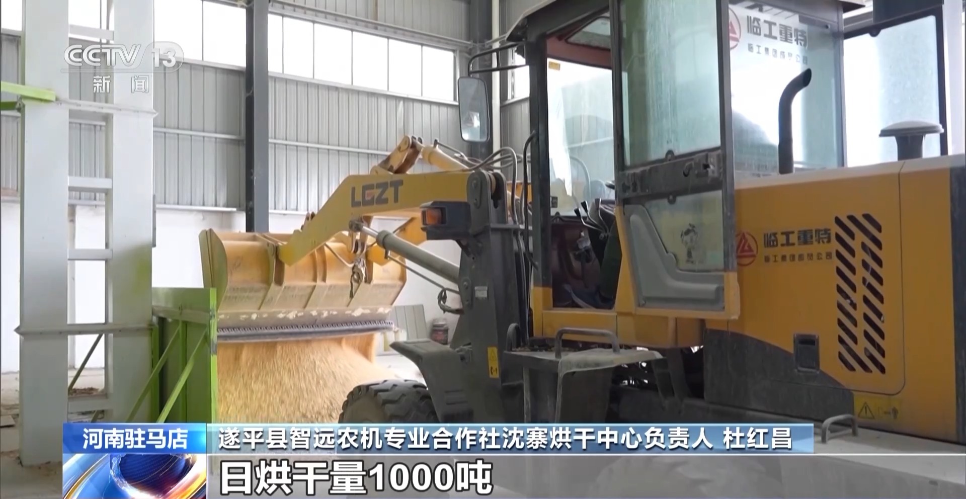 遂平县智远农机专业合作社沈寨烘干中心负责人 杜红昌:我们合作社4个烘干点20台机器,日烘干量1000吨,24小时不间断烘干,可以满足10个乡镇的烘干需求。