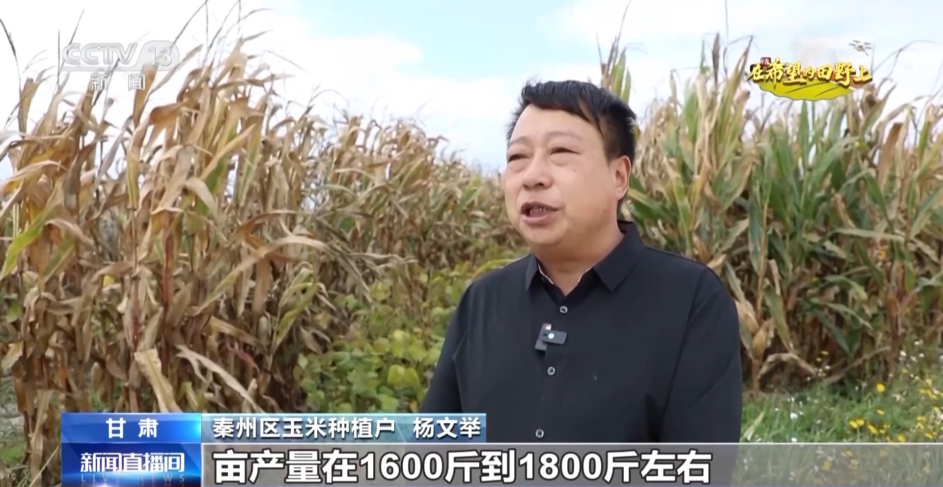 秦州区玉米种植户 杨文举:今年我们种植的玉米是1600亩,从今天收割的情况来看,亩产量在1600斤到1800斤左右,今年还是喜获丰收的一年。